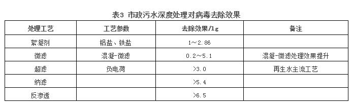 反滲透膜可以看作一種離子級的過濾器,可以過濾掉幾乎所有冠狀病毒和其他絕大多數病毒,這一點已經在2003年SARS期間在國內再生水廠運行結果得到充分證明。各種市政污水深度處理工藝對病毒的去除能力不同,總結見表3。