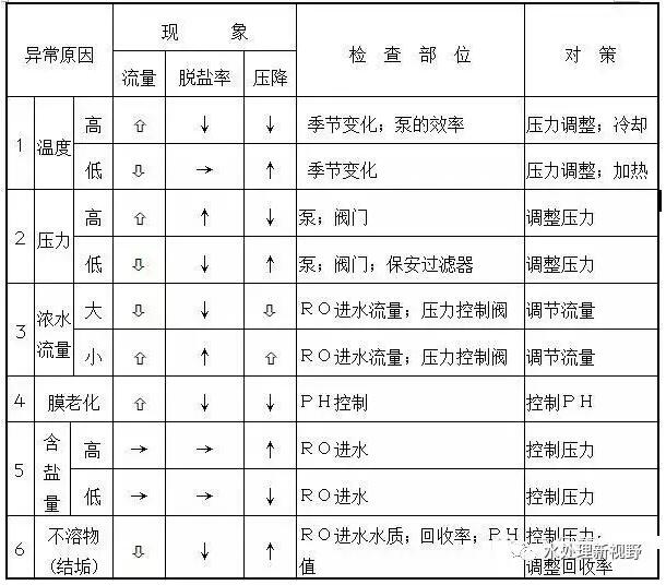 為了保證反滲透裝置安全正常的運行, 進裝置的原水進行適當處理和調整以達到下列指示: